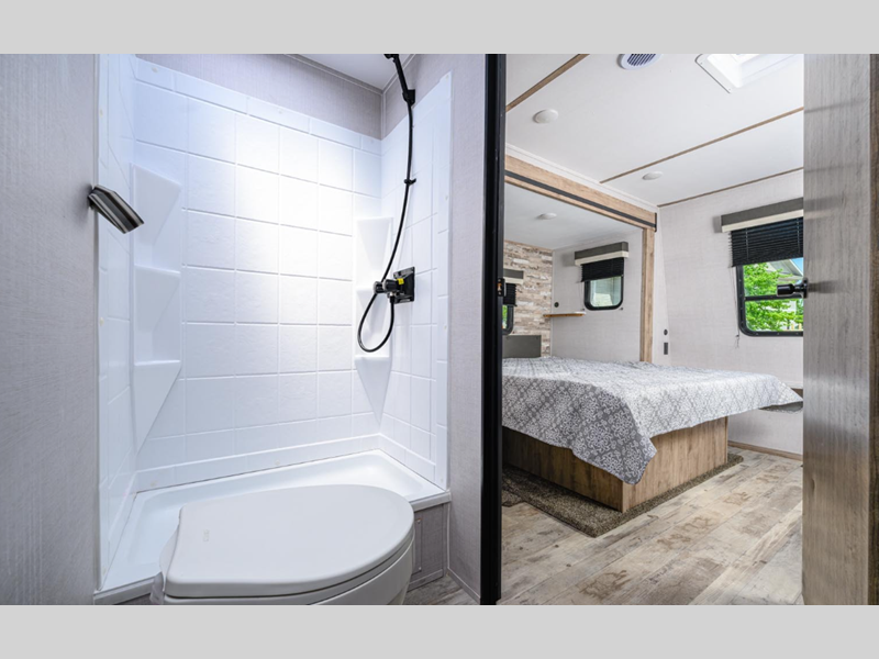 Sleeps 5 Slides 2 Length 33 ft 7 in Ext Width 8 ft Ext Height 11 ft 5 in Int Height 6 ft 8 in Hitch Weight 940 lbs Dry Weight 7390 lbs Cargo Capacity 2350 lbs Fresh Water Capacity 23 gals Grey Water Capacity 33 gals Black Water Capacity 33 gals Furnace BTU 35000 btu Available Beds Queen Refrigerator Type 12V Refrigerator Size 10.7 cu ft Cooktop Burners 3 Number of Awnings 1 LP Tank Capacity 20 lbs Water Heater Type Tankless AC BTU 13500 btu Awning Info Electric with LED Lights Axle Count 2 Number of LP Tanks 2 Shower Type Standard Electrical Service 30 amp Similar Floorplans