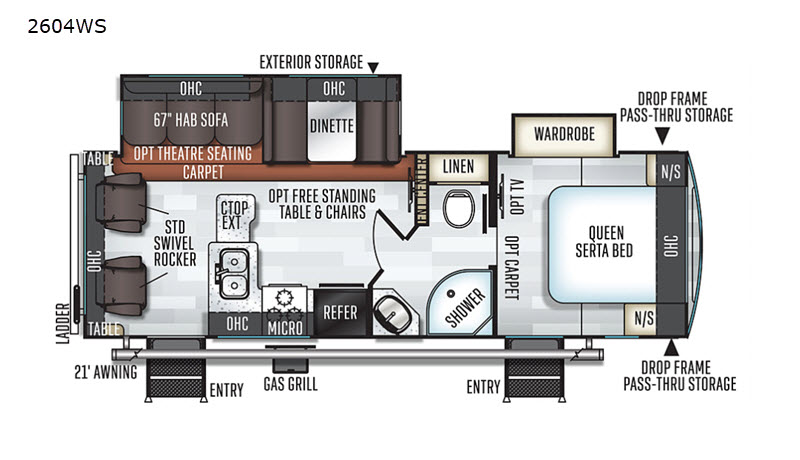 - Fireplace (2604SW, 2608BS, 2614BS, 2902WS, 2906RS Only)